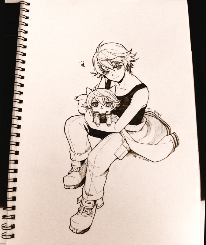 ↑官方设定是喜欢日本文化的家伙,于是用之前的那张搞了一张偏和风的草图,结果因为完全不会和风上色……于是就……坑了。残念……但愿还能有心气把这个上色otz……